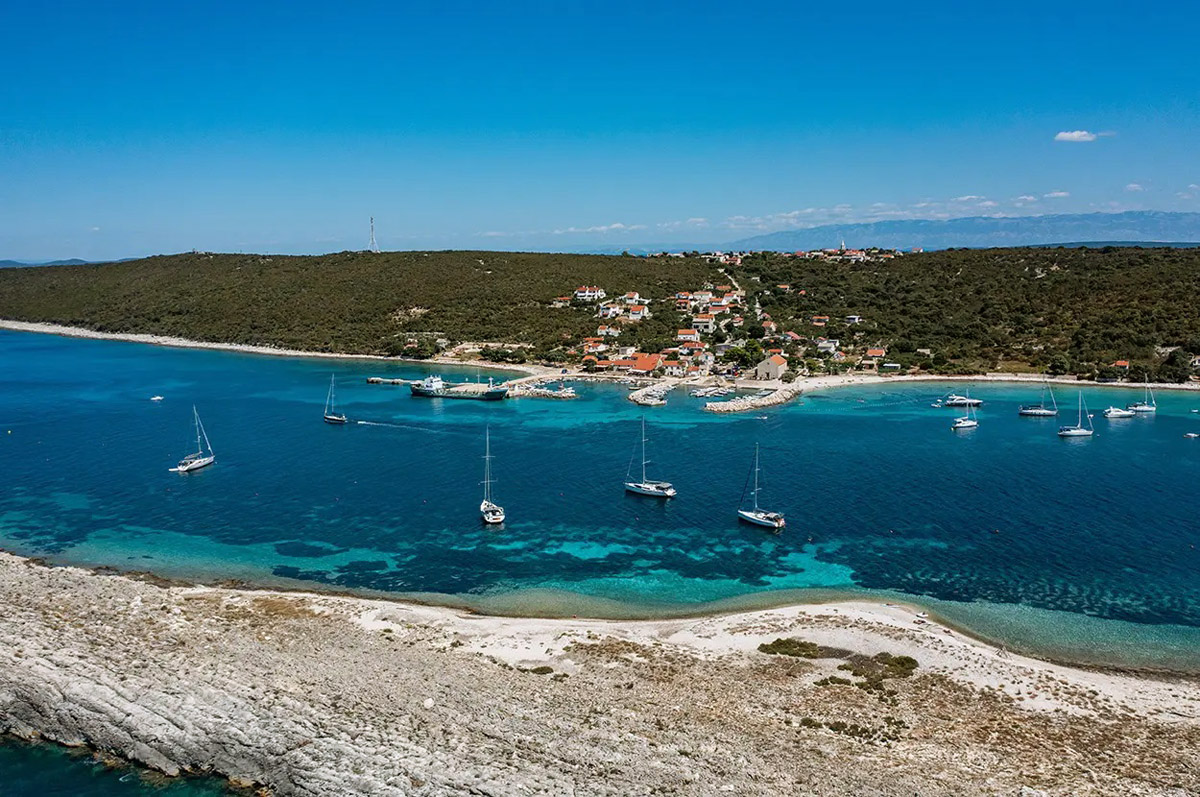 Facciamo rotta verso Dugi Otok, l’isola più grande dell’arcipelago di Zara. Rimane uno dei pochi luoghi dove è possibile godere di tranquillità anche in alta stagione, ideale per i velisti che apprezzano la pace e le bellezze naturali. Le spiagge dell’isola sono diverse da una zona all’altra. Nei pressi del villaggio di Sali, il più grande dell’isola, ci sono principalmente spiagge rocciose con terrazze di pietra, scogliere e pinete. Luoghi perfetti per i velisti, i subacquei e i praticanti del naturismo.