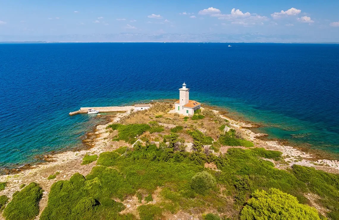 Stiamo quasi per concludere la nostra crociera tra Zadar e il Quarnaro. Ma c’è ancora da esplorare il famoso Capo Kamenjak, ossia l’estremità più meridionale della penisola istriana, situata vicino alla famosa località turistica di Medulin e ai villaggi di Banjole e Premantura. Kamenjak. Tutta quest’area è stata proclamata parco naturale ed è sottoposta a protezione speciale. L’intera costa del promontorio è lunga circa 15 miglia ed è punteggiata da numerose insenature, calette, piccole spiagge e isolotti. Ci sono numerose strade sterrate e sentieri che attraversano la penisola e che conducono alle zone più nascoste. Kamenjak è particolarmente attraente per gli amanti delle immersioni grazie al suo affascinante mondo sottomarino. In particolare le acque della Baia di Albanez.