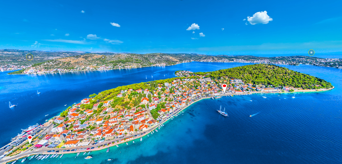 Il nostro viaggio in Dalmazia centrale inizia a Rogoznica, un borgo situato su una penisola collegata alla terraferma da un terrapieno. Geograficamente, Rogoznica funge da spartiacque tra la Dalmazia settentrionale e quella centrale. Il cuore pulsante per i velisti è il Marina Frapa, uno dei porti turistici più prestigiosi dell’intero Adriatico. Situato nella protetta Baia di Soline, il marina offre un ridosso eccezionale da tutti i venti. Oltre al celebre Lago Zmajevo Oko (l’Occhio del Drago), un fenomeno geomorfologico dove l’acqua cambia colore ciclicamente, non perdete una passeggiata fino alla Punta di Planka. Questo è il punto più sporgente della costa dalmata verso il mare aperto, dove si scontrano le correnti e i venti del Nord e del Sud; qui sorge la suggestiva chiesetta votiva di San Giovanni.
